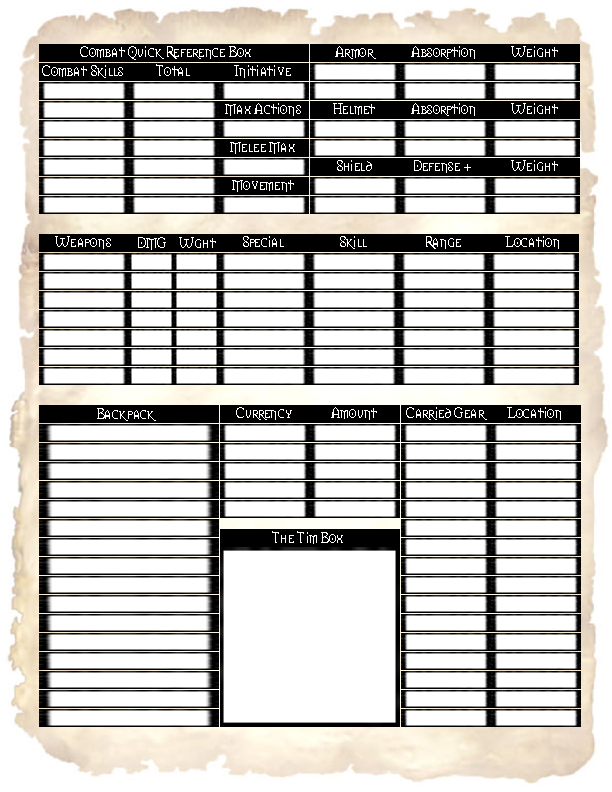 Character Sheet -- Back